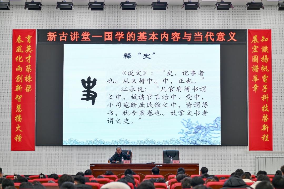 为传承珍贵文化遗产,让同学们深入领略国学的博大精深,提高国学知识储备,进一步加强同学们的道德修养,智能制造产业公司党支部于2024年12月4日,在化学报告厅举办了“新古讲堂”系列讲座第一讲——国学的基本内容与当代意义,活动特邀山西大学国学研究院经理刘毓庆教授主讲,临汾市儒学文化促进会的各位专家,以及党支部负责人赵春江和学工组负责人韩丽娟带领公司师生一同参加此次讲座。