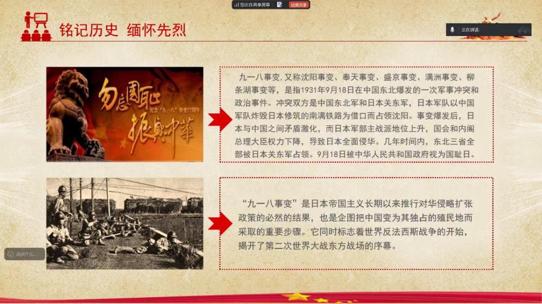 党日活动负责人首先带领全体成员回顾了中国人民抗日战争那段艰苦卓绝的历史,重温了无数革命先辈在民族危亡之际挺身而出、浴血奋战的英勇事迹。在集中学习之后,支部成员共同观看了讲述左权、佟麟阁等抗日将领事迹的纪录片。镜头里,左权将军和佟麟阁将军为了民族存续,甘洒热血、勇赴国难,彰显出的铁血担当与忠勇气节,让党员们深受震撼,纷纷表示要以先辈为范,砥砺初心,勇担使命。伟大的抗战精神,是中国人民弥足珍贵的精神财富,永远是激励中国人民克服一切艰难险阻、为实现中华民族伟大复兴而不懈奋斗的强大精神动力。活动最后,赵春江老师对本次党日活动进行总结发言,告诉同学们要铭记历史、警示未来,传承抗战精神,汲取奋进力量,一起筑牢民族复兴梦,为祖国事业添砖加瓦。