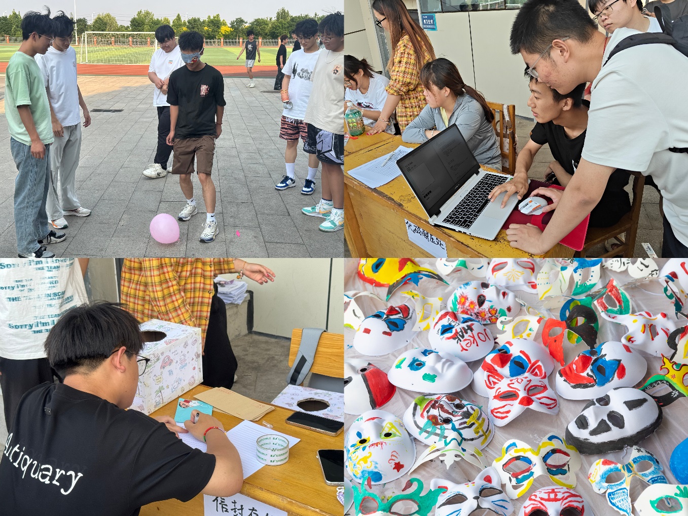 本次心理嘉年华共设置四大环节,活动当日,各区域有序开展,现场精彩纷呈。在"情绪面具涂鸦"区,同学们用画笔将内心情绪绘于面具,缤纷色彩与独特图案成为真诚的自我表达,展现出鲜活的内心世界。步入"代码解压游戏"区,此起彼伏的键盘敲击声中,同学们专注补全贪吃蛇游戏代码,在感受编程乐趣的同时,压力也随着代码运行悄然释放。"时光慢递驿站"内氛围温馨,同学们执笔写下对未来的期许,将珍贵寄语封存,静候时光开启。最热闹的"蒙眼闯关大挑战"中,两人一组默契配合,蒙眼者在同伴指引下穿越障碍,每一次成功通关都引发欢呼,将现场气氛推向高潮。活动结束后,同学们纷纷表示,此次活动以创新形式搭建起心理健康的认知桥梁,既深化了对内心世界的觉察,也掌握了情绪调节的智慧,未来将以更丰盈的精神状态拥抱成长。